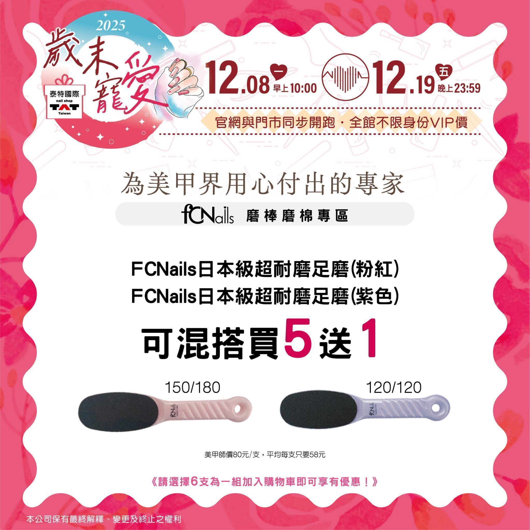 fCNails 日本級粉色/紫色足磨 買5送1▲請選擇6支為一組加入購物車即可享有優惠!
