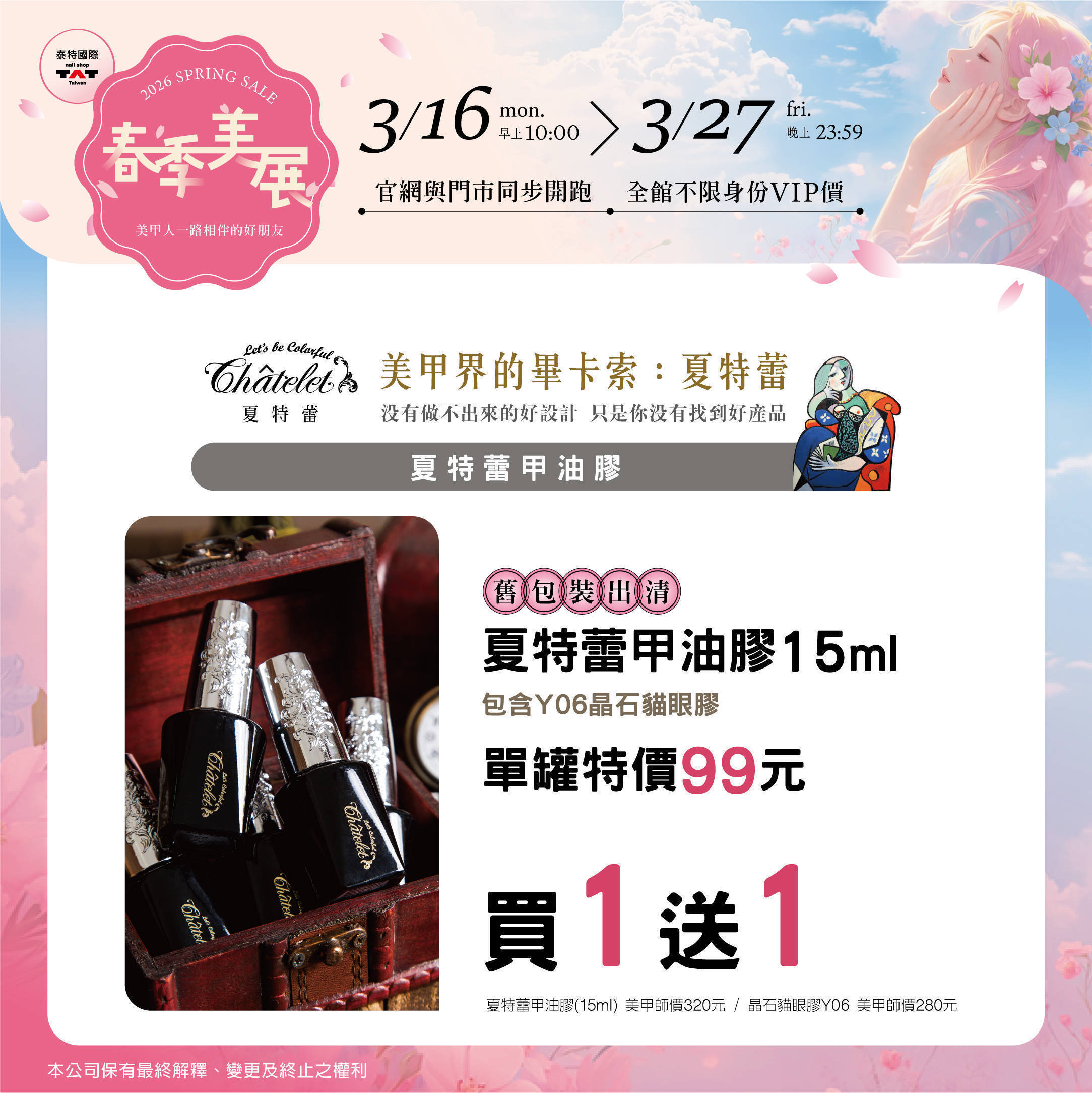 ↗即期品出清↙夏特蕾彩膠3g 特價$99/罐 ; 買1送1(限指定色號)※出廠年份2022年3月.4月▲請選擇2罐為一組加入購物車即可享有優惠!