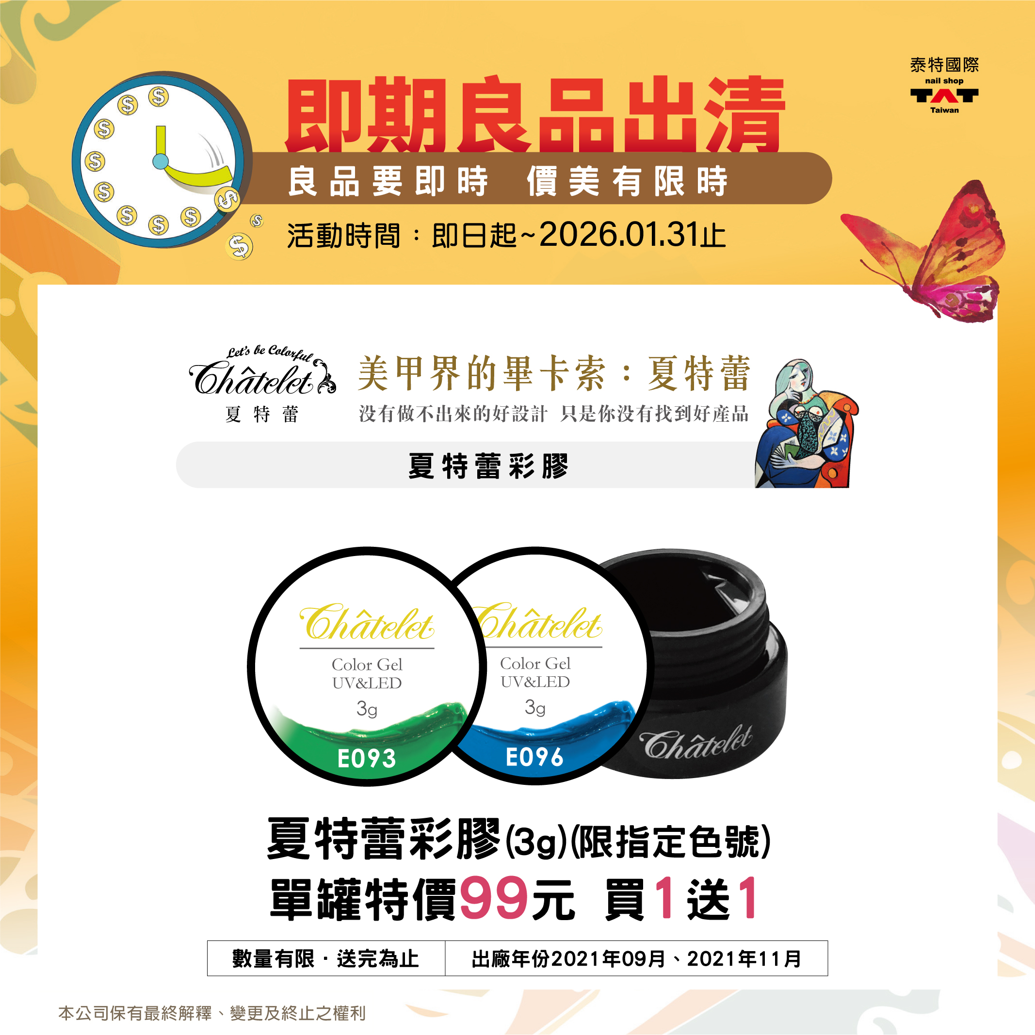 夏特蕾彩膠3g 特價$99/罐 ; 買1送1(限指定色號)※出廠年份2021年09月.11月~ ▲請選擇2罐為一組加入購物車即可享有優惠!