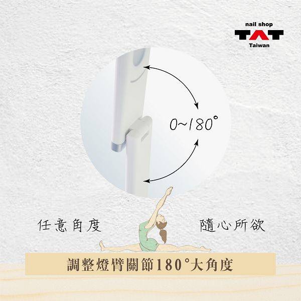 調整燈臂關節180°大角度。