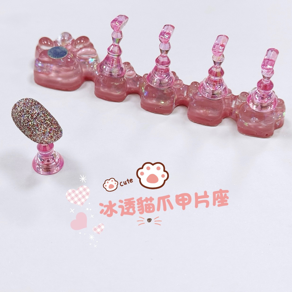 冰透貓爪甲片座-粉