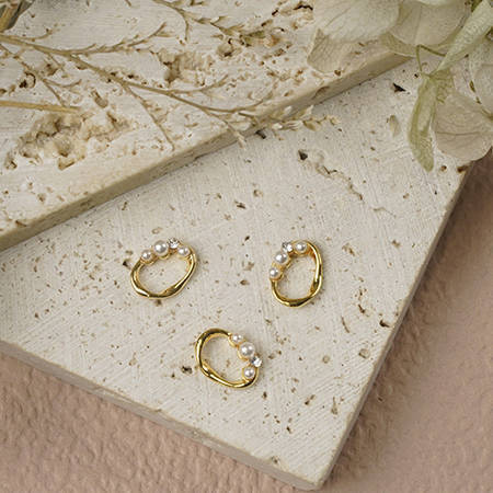 D.nail 鏤空橢圓鑲珍珠-金 DM-115 (9mm×6mm)10P