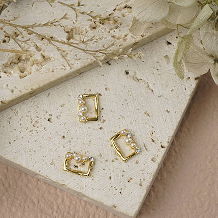D.nail 鏤空長方鑲珍珠-金 DM-114(7mm×5mm)10P