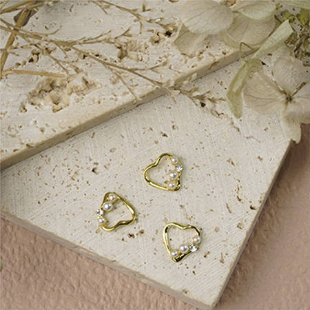 D.nail 鏤空愛心鑲珍珠-金 DM-112 (7mm×7mm)10P
