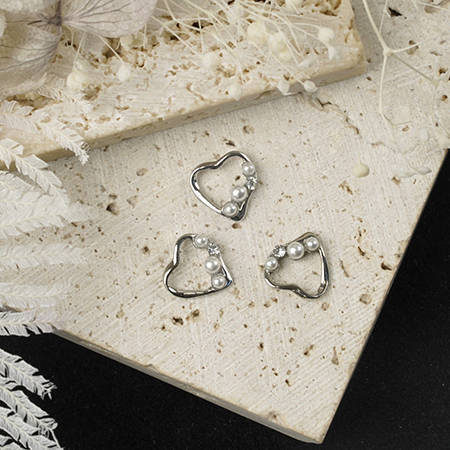 D.nail 鏤空愛心鑲珍珠-銀 DS-54 (7mm×7mm)10P