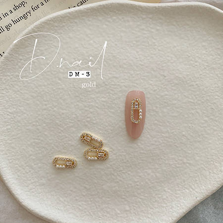 D.nail 鏤空橢圓鑲珍珠-金 DM-115 (9mm×6mm)10P